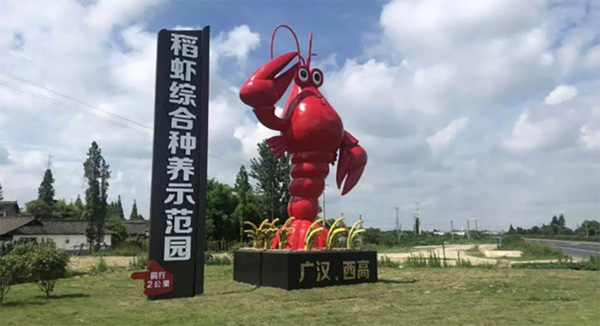 来到广汉西高的稻虾综合种养示范园,首先映入眼帘的是一只单手敬礼的小龙虾,憨态可掬的模样给示范园增色不少。